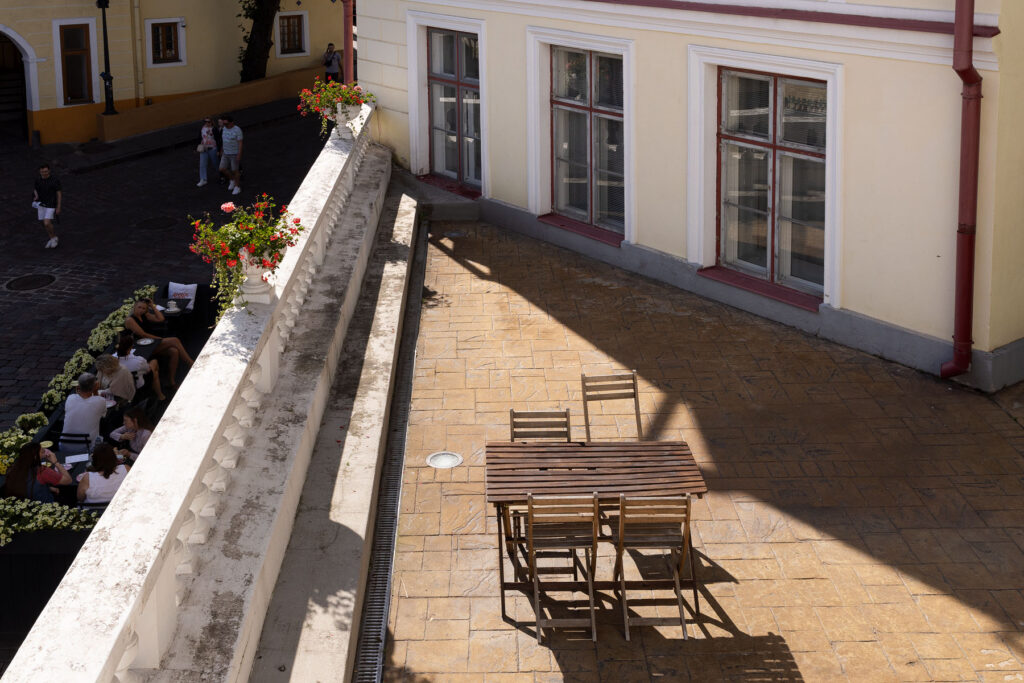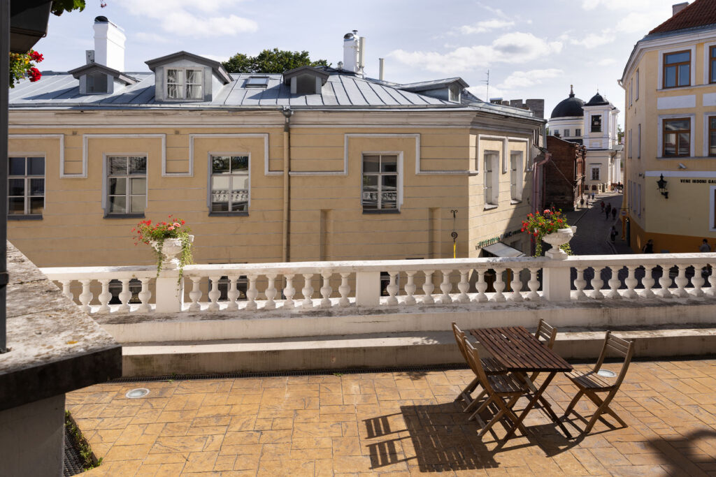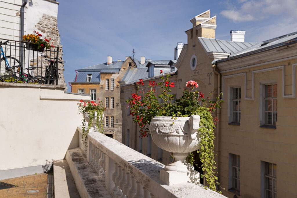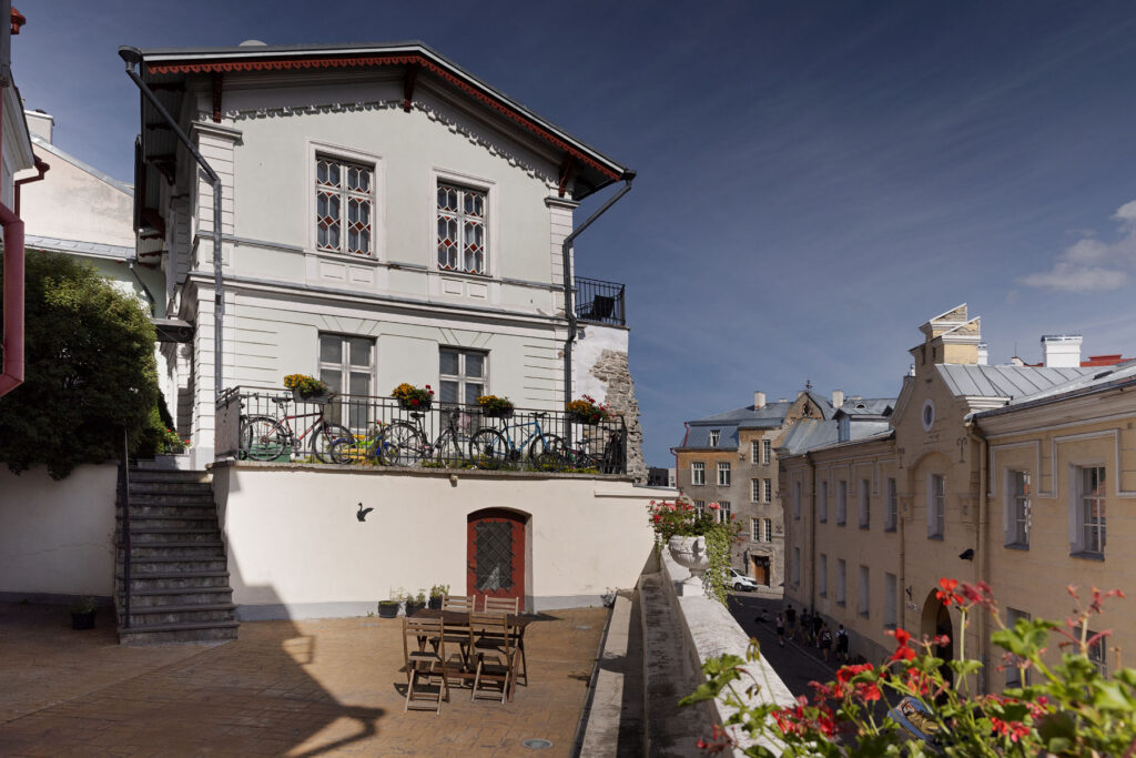 The former winter manor of the bailiff of Järva County in the Old Town of Tallinn. The crown of the building with a big terrace is a townhouse with Italian-style stained glass windows.